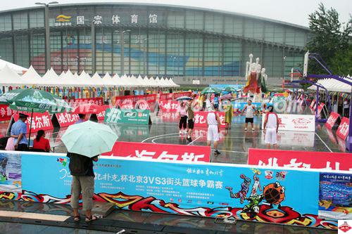 由北京市社会体育管理中心、上海姚记扑克股份有限公司主办,海尔斯(中国)体育用品有限公司、河北胜源体育器材有限公司、北京丽华快餐有限公司、华润怡宝食品饮料(深圳)有限公司协办、北京睿智翔云广告有限公司承办的北京奥运城市体育文化节全民健身系列活动“2010姚记扑克杯北京3VS3街头篮球争霸赛”在奥林匹克公园景观大道落下帷幕。 21日上午比赛一开始,天空就下起了阴雨,之后越下越大,并一直没有间断,但是比赛却没有因为阴雨而终止。由于下雨导致气温骤降,但是参赛队员依旧克服重重困难,积极参加比赛,表现出了篮球赛的魅力。更令人感动的是,很多观众冒雨观看比赛,并不时给参赛队员报以热烈的掌声和呐喊声。雨雾中顽强拼搏的参赛队员和不离不弃的观众共同构成了本篮球争霸赛上的一大亮点。经过两天的比赛,折翼天使队、李之队、天梦队分别获得了初、高中组的冠、亚、季军,海派甜心队、黑色猫咪队、章鱼队分别获得了女子组的冠、亚、季军,新动队、四青之队、星期六队分别获得了公开组的冠、亚、季军,微生物队、地球2队、网络中心2队分别获得了科技组的冠、亚、季军。